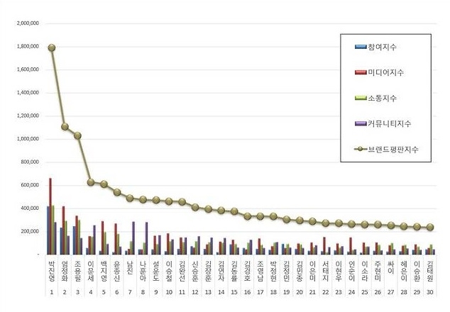 9월 레전드 가수 브랜드평판의 정상에는 박진영이 우뚝 섰다. 지난 8월 대비 무려 91.16% 상승한 178만9132의 브랜드평판지수를 기록하며 압도적인 존재감을 과시했다. 이는 참여지수, 미디어지수, 소통지수, 커뮤니티지수 전반에 걸친 고른 성장으로 이루어진 결과다.