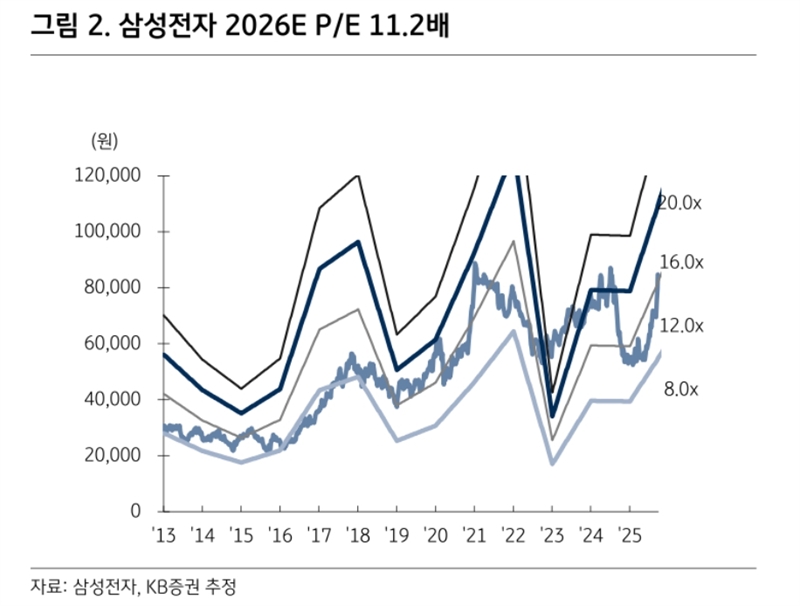 특히 KB증권은 오는 2026년 삼성전자의 실적 전망을 매출 358조원, 영업이익 53조4000억원으로 제시하며 지난 2018년 이후 8년 만에 최대 실적을 경신하면서 다시 한번 전성기를 맞이할 것을 예고 했다.