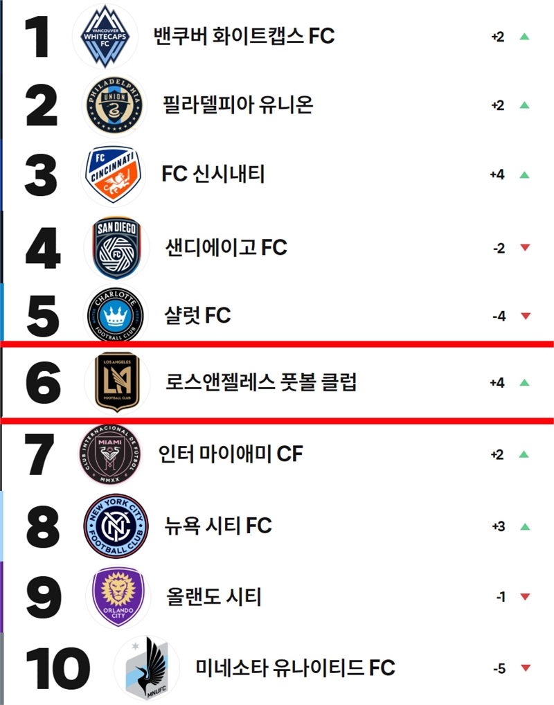 MLS 사무국이 공식 발표한 최신 파워랭킹에서 LA FC의 약진은 단연 눈에 뛴다. 지난달 '슈퍼 쏘니' 손흥민 선수가 합류한 이후 LA FC는 무려 4계단이나 상승하며 전체 6위에 이름을 올렸다. 이는 리오넬 메시가 이끄는 인터 마이애미를 7위로 밀어낸 결과로 손흥민의 시너지가 얼마나 강력한지를 단적으로 보여준다.